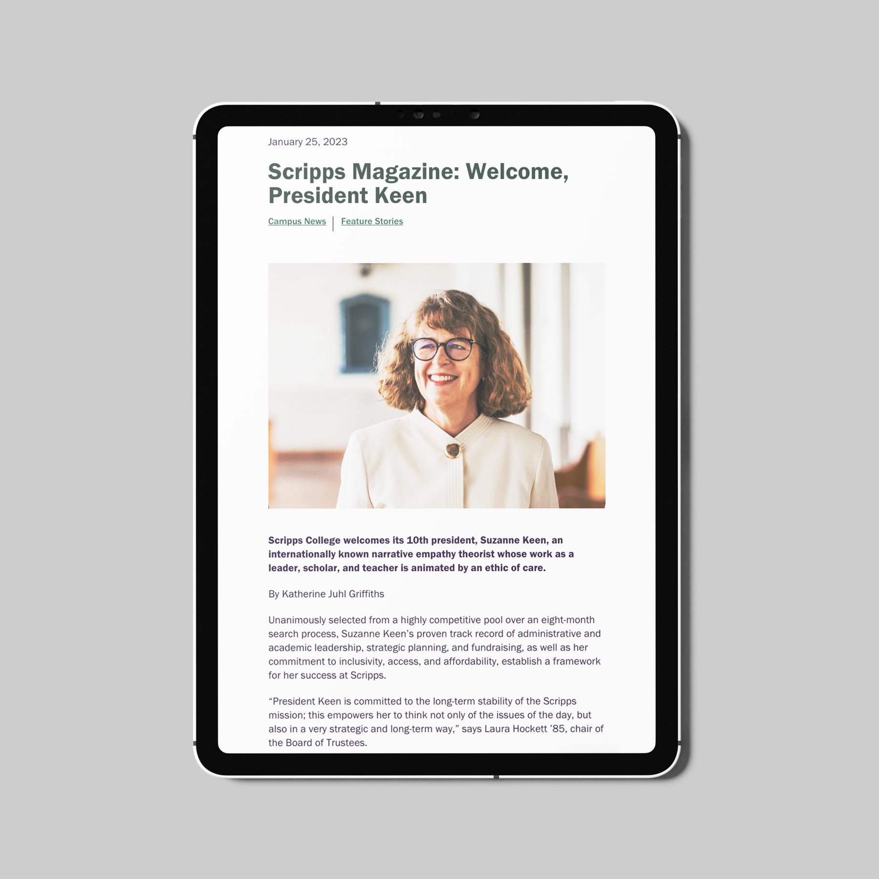Scripps College Magazine's Fall 2022 issue required high-quality photography to support two key editorial departments: a "Focus on the Faculty" spotlight on Associate Professor of Dance Kevin Williamson, and a two-page "Seen & Heard" event coverage spread.