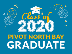 Senior Graphic Designer Kjerstin Wingert created virtual graduation invitations to the live-streamed ceremonies. Students from all four Pivot sites, including Pivot Charter School Riverside and Pivot Charter School San Diego, received lawn signs and car decals designed by Tripepi Smith as part of “graduation packs,” hand-delivered to graduating seniors by Pivot staff.